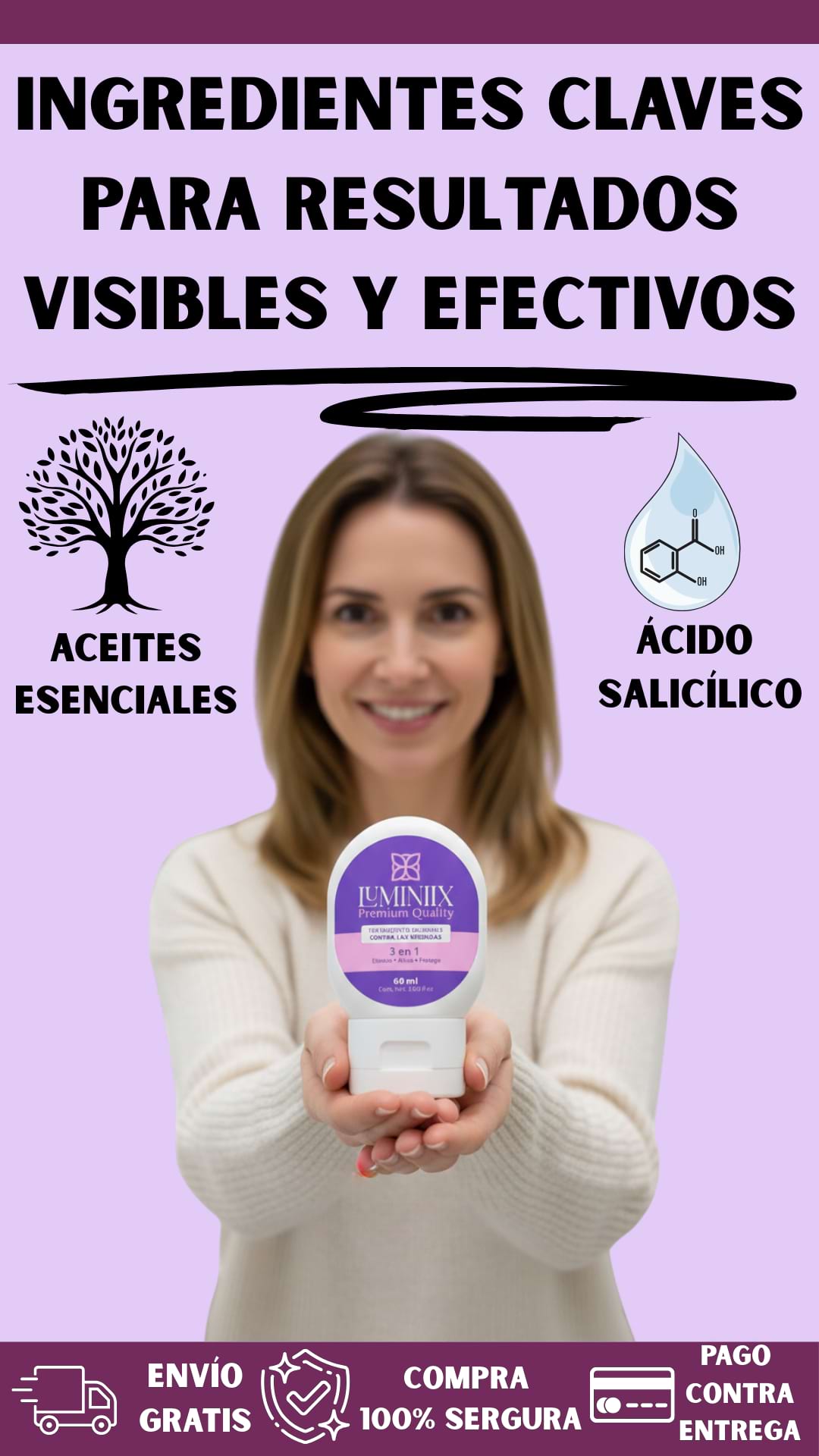 Sí, Luminix está formulado para ser seguro en áreas como rostro, cuello, manos, axilas, pies y cuerpo. Sin embargo, se debe evitar el contacto con mucosas y heridas abiertas.