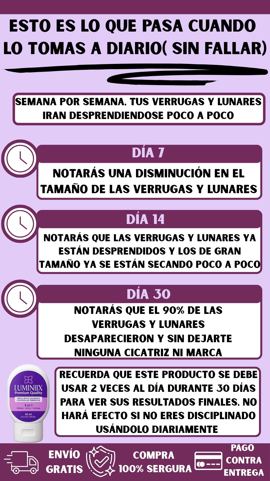 Los resultados pueden variar según el tipo y tamaño de la verruga. Generalmente, se pueden observar mejoras entre 7 y 15 días de uso constante.